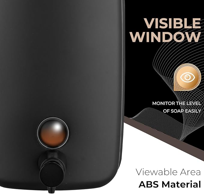 • 【1000ML LARGE CAPACITY】This manual soap dispenser black is suitable for various liquids, such as hand soap, shower gel or shampoo. and equipped with a visible window. Allows you to easily monitor the soap level and know exactly when to refill.