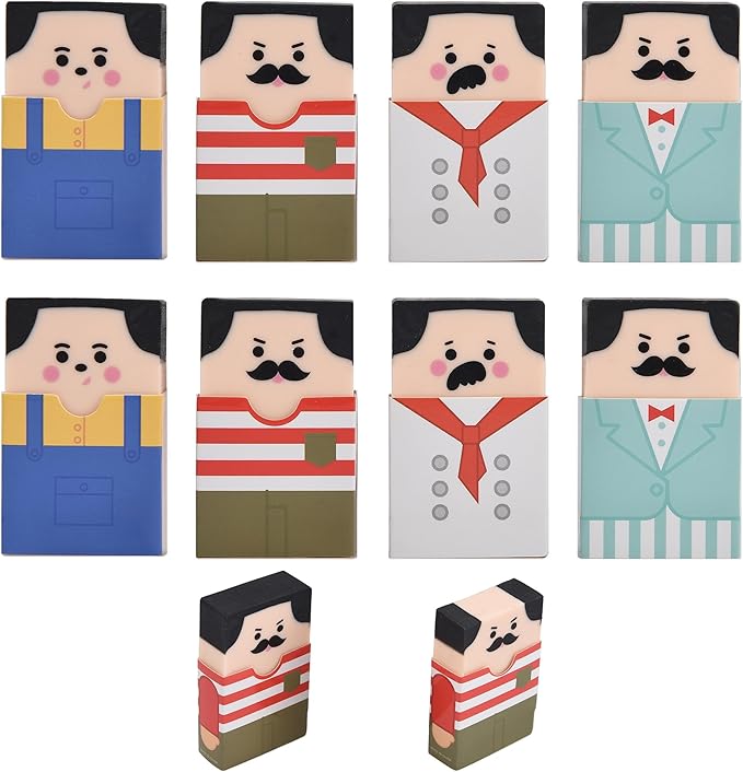 • Humorous Design: Features 8 playful erasers shaped like men whose hair gradually disappears, revealing a comical bald appearance