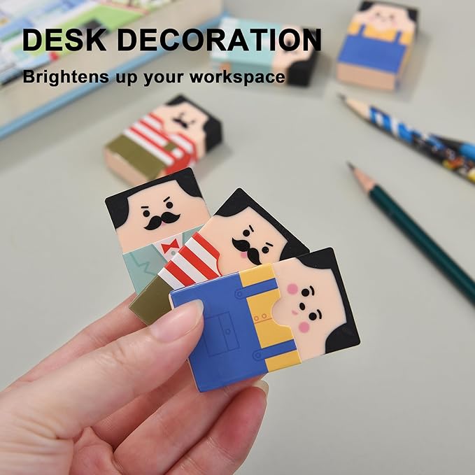 • Unique Transformation: Watch these erasers go from a full head of hair to a bald look with each use, adding fun to your daily tasks