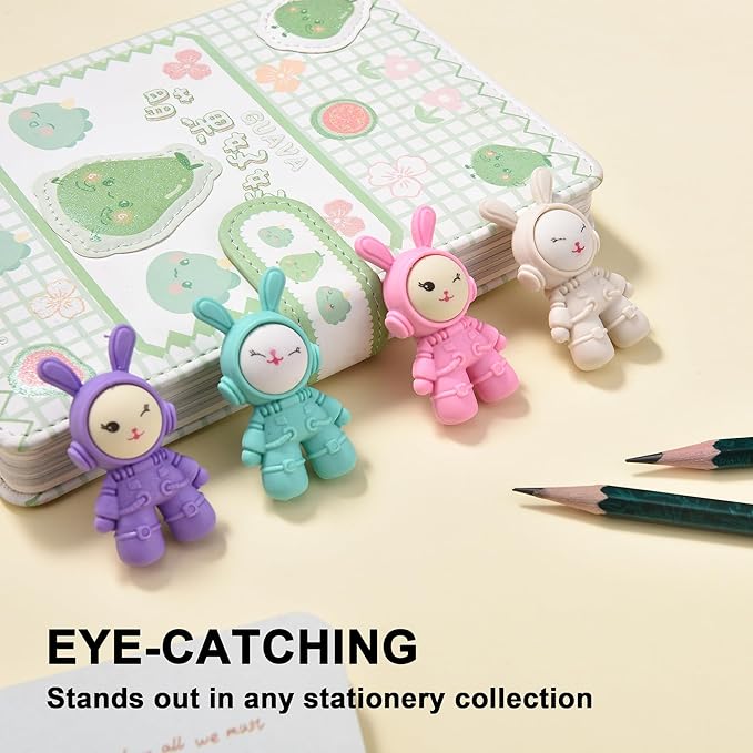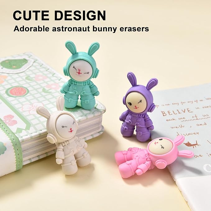 • Cute Space Theme: 20 unique erasers featuring adorable astronaut bunny designs that add a fun outer space theme to any stationery collection