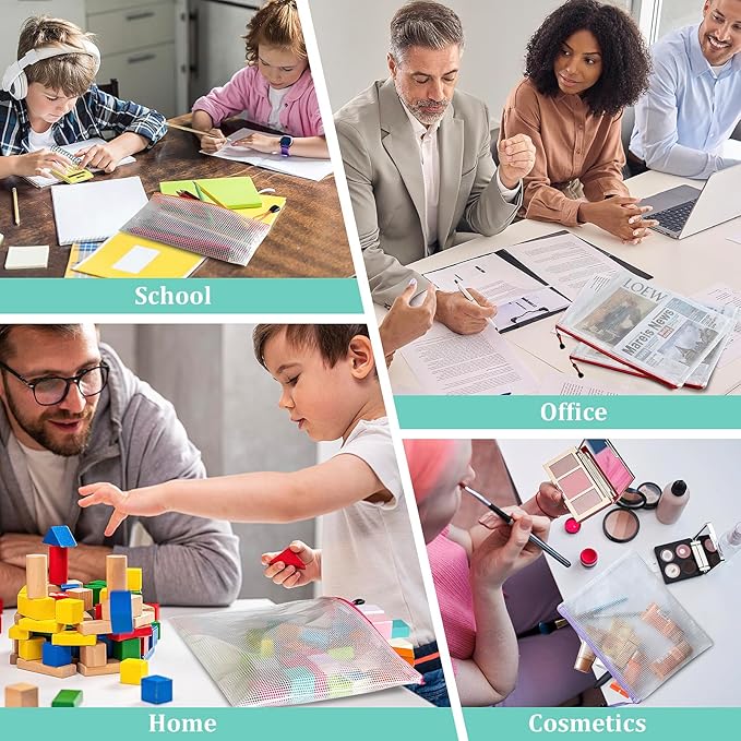 • Reusable Zipper Bags: The mesh bags are made of PVC, safe and reusable. These mesh zipper pouch bags are perfect for home office organization and storage, whether as family pouches for organization or project bags and travel zipper pouch, they can better help you organize your items and make your space more tidy and organized.