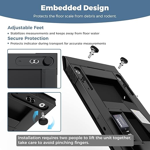 - Installation and Maintenance: The package includes a display charger, sensor cable, communication cable, four feet, and screws. Given its weight, we recommend that two people lift it to avoid damaging the product. Keep the scale remains level during use to protect the weighing components. We can assist you with the replacement and maintenance of weighing components. Additionally, the dashboard has a threaded lifting eye bolt hole, allowing for optional bracket attachment if needed.