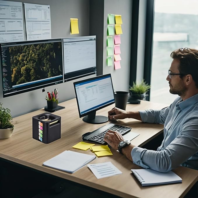 - 5-in-1 Design: The sticky note sticker holder adopts a 5-in-1 design, which integrates 4 types of note stickers and 1 magnetic absorber case. The fine teeth on the edges allow you to easily remove sticky notes from different directions; The magnetic design on the top securely attaches a paper clip or gadget, allowing you to work on your files on the go