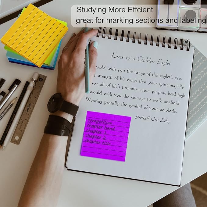 • 8 BRIGHT COLORS: 3x3 lined sticky notes include 8 bright colors, fluorescent yellow, fluorescent green, lake blue, rose red, fluorescent powder, fluorescent orange, blue, purple, Bright sticky notes for dispenser making your message more noticeable, practical to use.