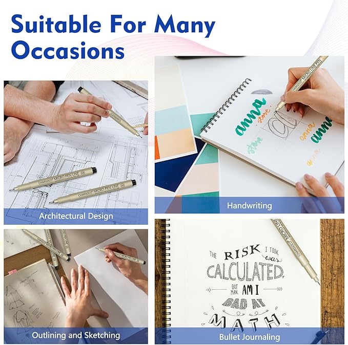 - 【Premium Craftsmanship】Crafted with meticulous attention to detail, these micro inking pens prevent bleeding, remain odorless, and exhibit complete fade-resistance, ensuring the longevity of your notes or artworks. The ergonomically designed round barrels offer comfortable grips, making these pens fit snugly in your hand.