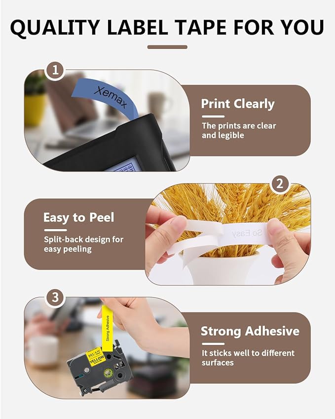 • 18mm 3/4in Tze Color Label Tape Compatible with Brother P touch Label Makers: PT-D600, PT-D610BT, PT-D600VP, PT-P710BT, PT-P750WVP, PT-P700, PT-2730VP, PT-H500LI, PT-2730, PT-2430PC, PT-2300, PT-E500, PT-1400, PT-1500, PT-1500PC, PT-1600, PT-2110, PT-2200, PT-2210, PT-2300, PT-2310, PT-2400 and more