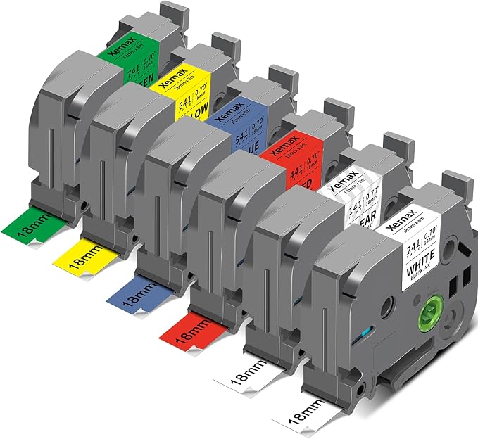 • Package Include: 6-Pack Multi-Color Tze 18mm 0.7" Label Tape Compatible for Brother Label Tape Tze-141 Tze-241 Tze-441 Tze-541 Tze-641 Tze-741 (Black on Clear/White/Red/Blue/Yellow/Green)