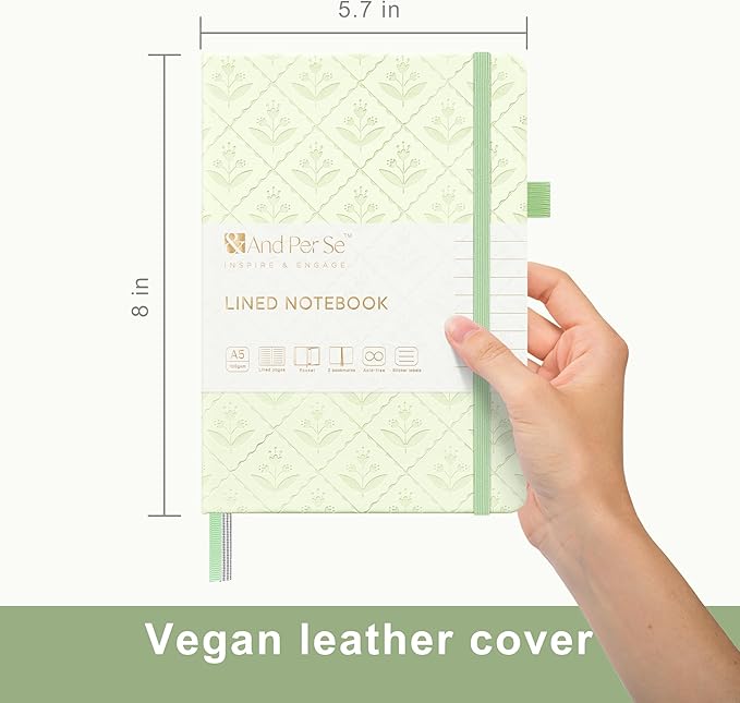&And Per Se Lined Journal Notebook for Women&Men with Pattern, 160 Pages 100GSM Thick Paper, A5 Hardcover Journals for Writing(Light Green)
