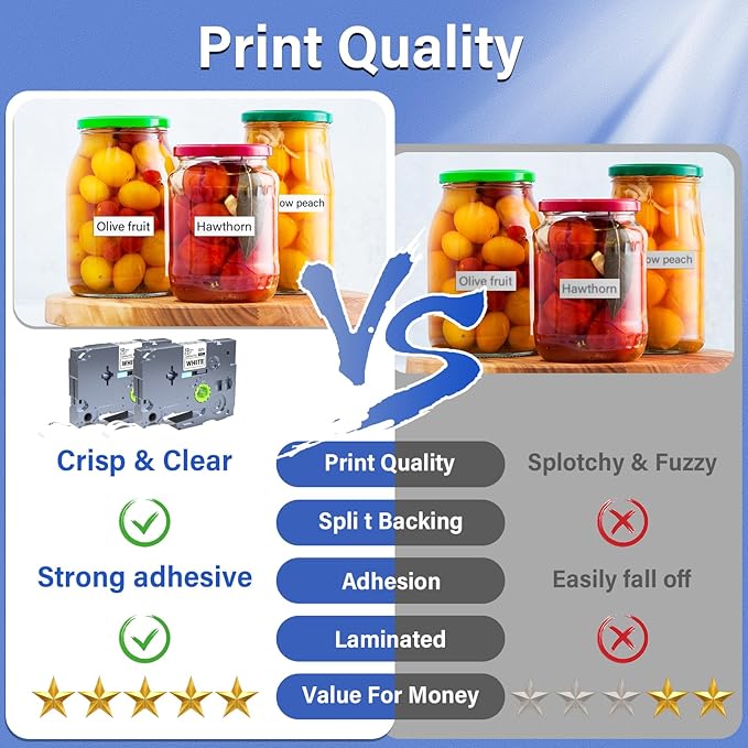 • [Wide Compatibility] This 8-pack of label maker tape is compatible with a wide range of Brother P-touch label makers, including P-Touch PT-D200, PT-D210, PT-D215E, PT-D400, PTD400AD, PT-D600, PTD600VP, PT-H100, PT-H110, PT-P300BT, PT-P700, PT-P710BT, PT-H300, PT-H300LI, PT-H500LI, PT-D450, PT-D600VP, PT-D800W, PT-1090, PT-1190, PT-1230PC, PT-1280, PT-1290, PT-1750, PT-1800, PT-1830, PT-1880, PT-1890C, PT-1890SC, PT-1890W, PT-1900, PT-1950, PT-2030, PT-2100, PT-2430PC, PT-2730, P-Touch Embellish, PT-6100, PT-9600.