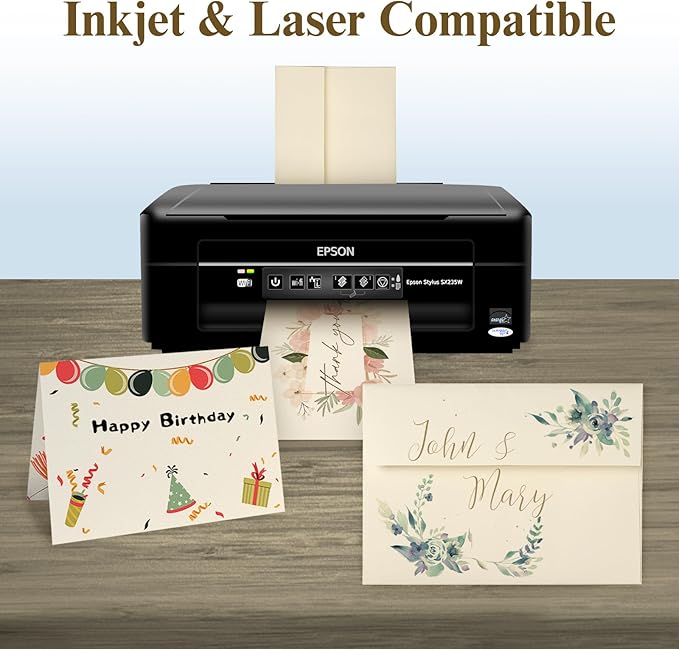• Print, Stamp & Write Well: Our blank cards with envelopes for card making are compatible with Inkjet & Laser Printers; easy to write on or stamp with the blank note cards and envelopes, smudge free—ideal for invitations and announcements