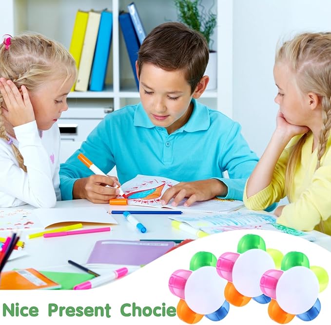 • 【5-in-1 Fluorescent Pens】Enjoy the versatility of these 5-in-1 petal highlighters! With green, yellow, blue, orange, and pink colors in each petal marker, you will have a wide range of options for highlighting textbooks and documents, or for drawing pictures. Perfect for both study and creative expression.