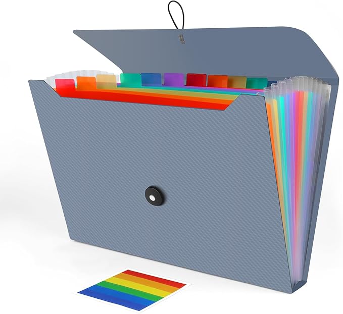 • 【COLORFUL DESIGN】Our expandable file folder features rainbow-colored inner pages and small colored labels for easy classification, making it both functional and visually appealing
