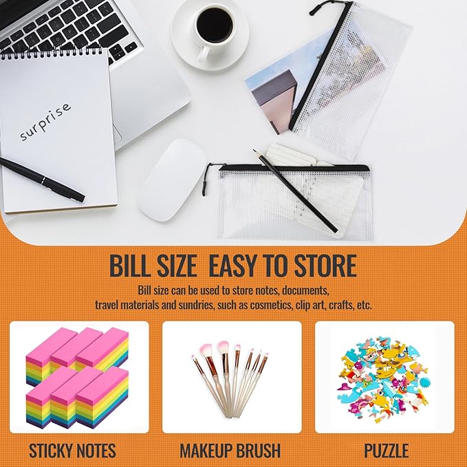 • Material Quality: Mesh zipper pouch bags are made of waterproof polyvinyl chloride PVC material, safe and durable, protecting files from moisture tough and durable, resistant to acid, not easy to tear