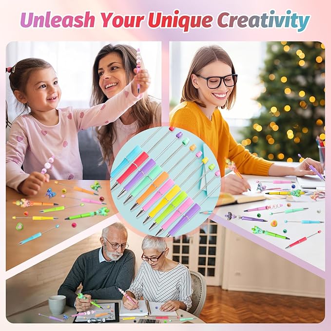 • Colorful Beadable Pens Bulk: The beaded pen bulk contains 8 different pen shell colors and matching black ink refills, sufficient quantity and a variety of bright colors can meet your daily replacement needs, convenient to carry, diy pens show personality