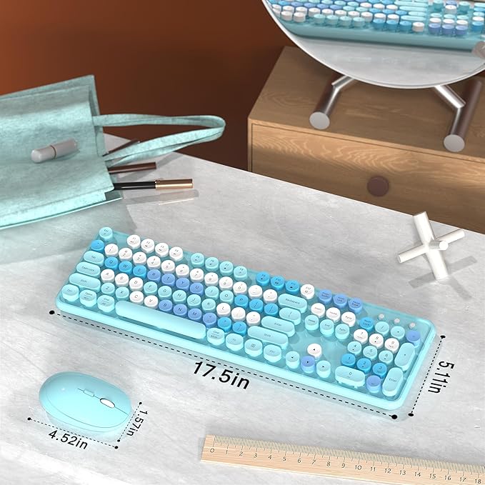 - Retro Colorful Design with Round Keycaps – Brighten up your workspace with this colorful wireless keyboard and mouse combo. The typewriter-style round keycaps offer a nostalgic yet modern feel, making it a perfect fit for home or office use