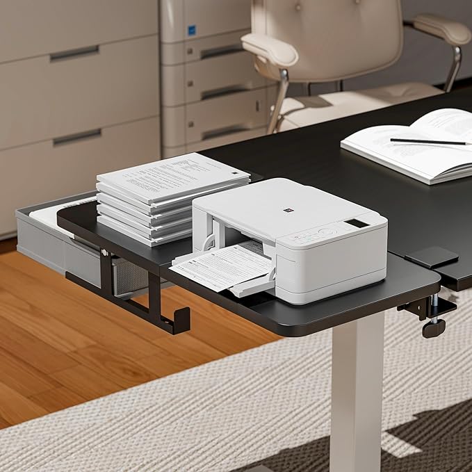- QUICK AND SECURE INSTALLATION: The clamp-on design enables fast, damage-free installation and fits desks 0.6" to 2.4" thick and at least 22" wide. It can be mounted on the front or side of your desk to suit various workspace layouts. Not compatible with raised, beveled, or irregular desktop edges.