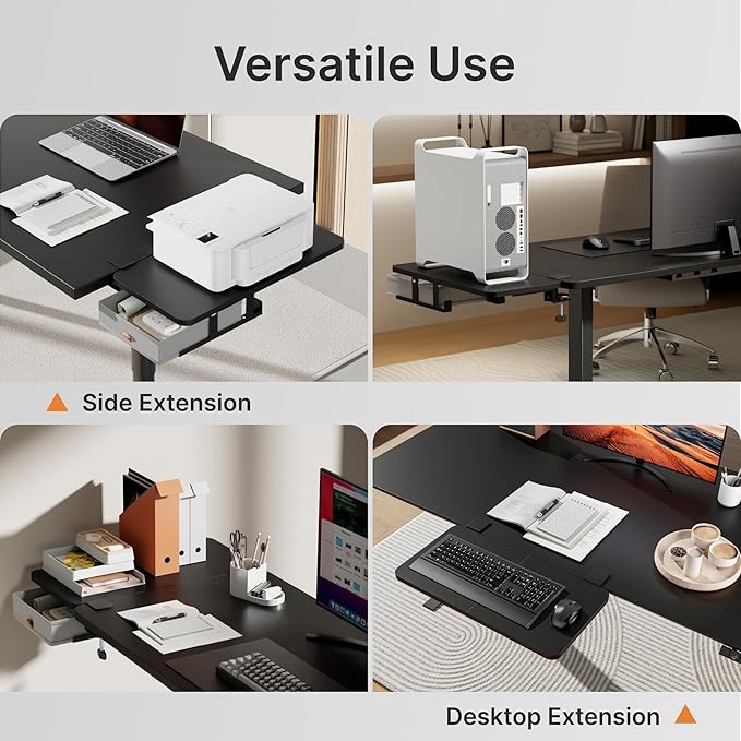 - HEAVY-DUTY DESIGN WITH EXCEPTIONAL LOAD CAPACITY: Constructed from premium materials, this 9.5-pound desk extender features an impressive load capacity of up to 55 lbs.The sturdy construction ensures long-lasting durability, while the rounded-edge design ensures safety by preventing accidental scratches or bumps, combining reliability with user safety for everyday use.