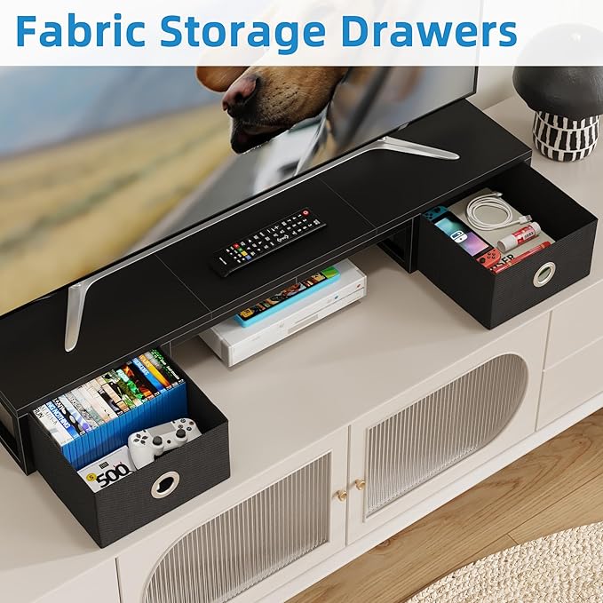 • 【TV Riser with Fabric Drawers】TV shelf design with 2 drawers, offer a privacy space to storage your media remote, CDs and magazines etc. Maximize your tabletop with this tv riser stand to maintain a clean, organized look.