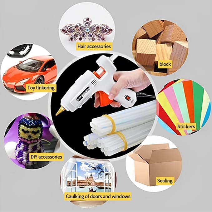 • VERSATILE APPLICATION: Our hot glue sticks are designed to bond seamlessly with a wide variety of materials, including paper, wood, metal, plastic, fabric, ceramic, foam, and more. Perfect for all your DIY, crafting, and repair needs at home, school, or the office.