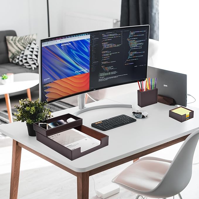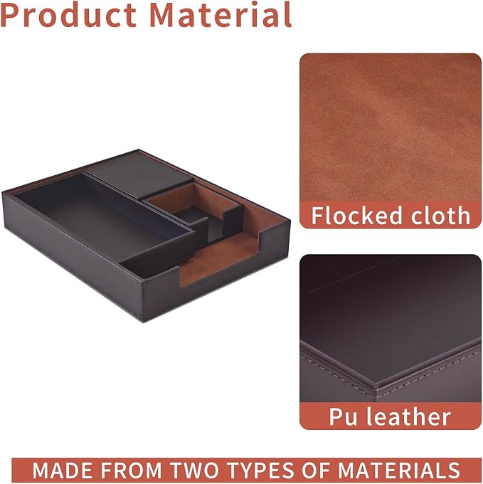 - Office Supplies Set Sturdy and Well-Made: our each desk organizers accessories internal is made of MDF material,Surface high-quality PU leather with exquisite hand stitching,Beautify any office desk,A great addition to anyone’s home office! No complicated installation process is required,Open the box to upgrade your office.