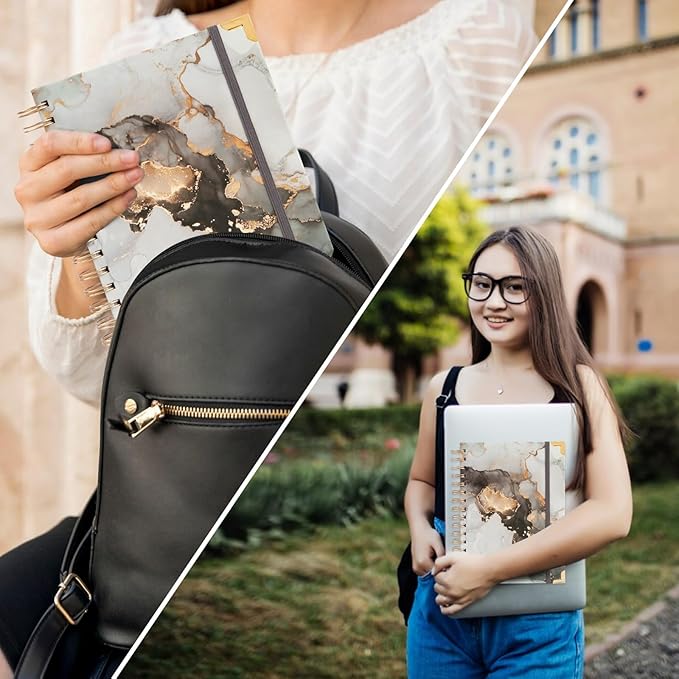 - 【Interior Pockets & Best Gift for women】 Journaling notebook features a durable hardcover with pink marble and a double sided storage pocket can hold things as you like. The golden twin-wire thick spiral and golden horn guards can secure and protect the spiral notebook. Ideal for all office, school, and home use, it is also a great decoration for your desktop. More, kutoda hardcover notebook is a perfect gift choice for friends, family, classmates, and coworkers
