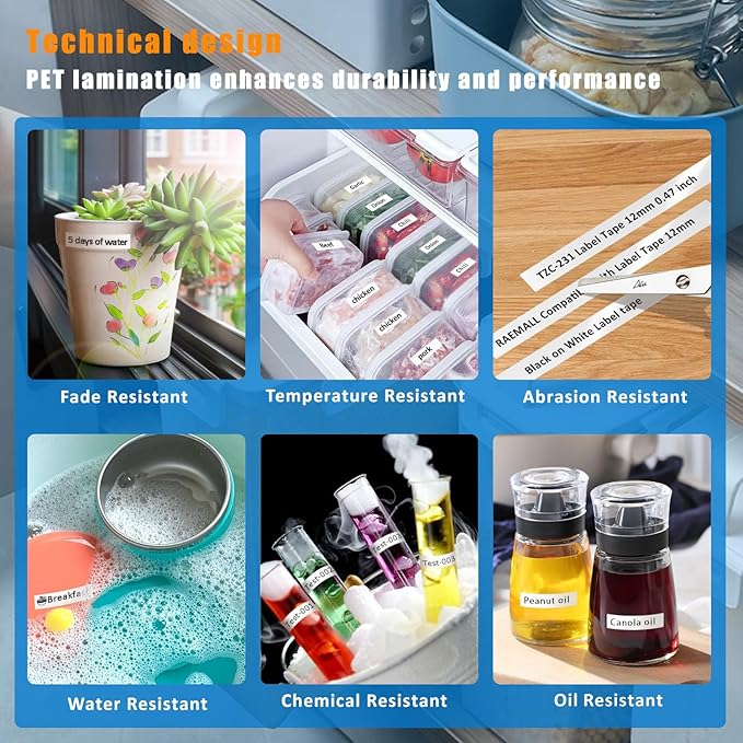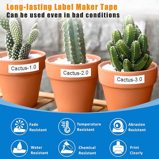 - Laminated and Long-lasting: Replace for Brother TZe TZ Tape 12mm 0.47 laminated white label maker refill tape with the feature of water resistant, mudge proof, temperature resistant, fade resistant, oil resistant, abrasion resistant, chemical resistant, strong adhesion, it can be used even in harsh environment