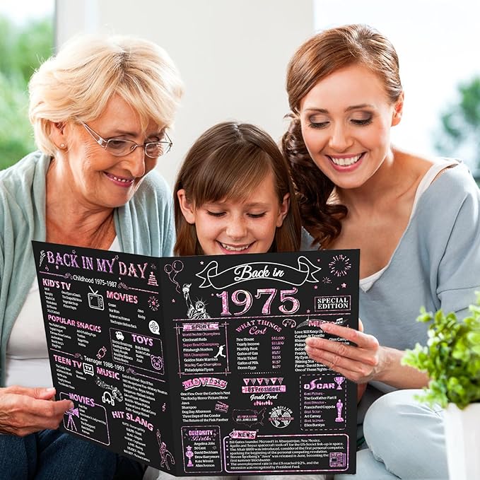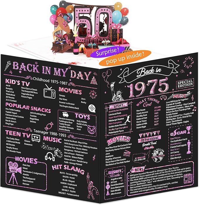 50th Birthday Card for Women Her, Jumbo 3D Pop Up 50th Birthday Gifts, Back In 1975 Happy 50 Year Old Sister Birthday Decorations Cards Card for Wife, Rose Gold