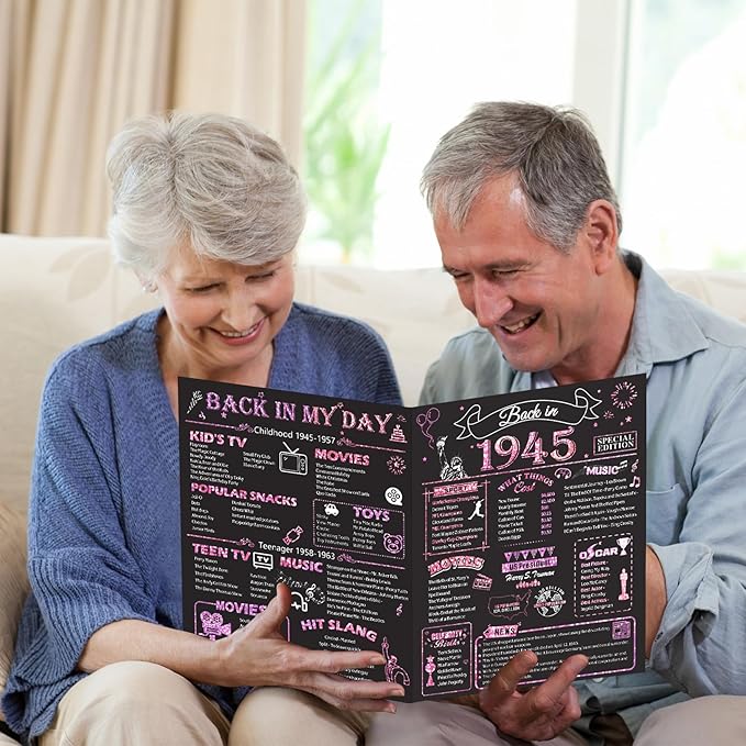 80th Birthday Card for Women, Jumbo 3D Pop Up 80th Birthday Gifts for Mom Grandma, Back In 1945 Happy 80 Year Old Sister Birthday Decorations Cards Card for Her, Rose Gold