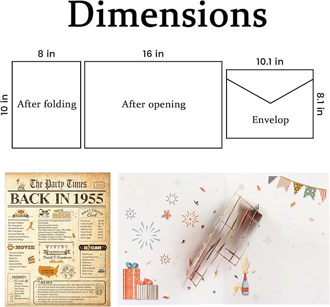 70th Birthday Card for Men Women, Funny 3D Pop Up 70th Birthday Gifts for Grandma Mom Dad, Back In 1955 Happy 70 Year Old Birthday Decorations Cards for Her Him, Classy Vintage