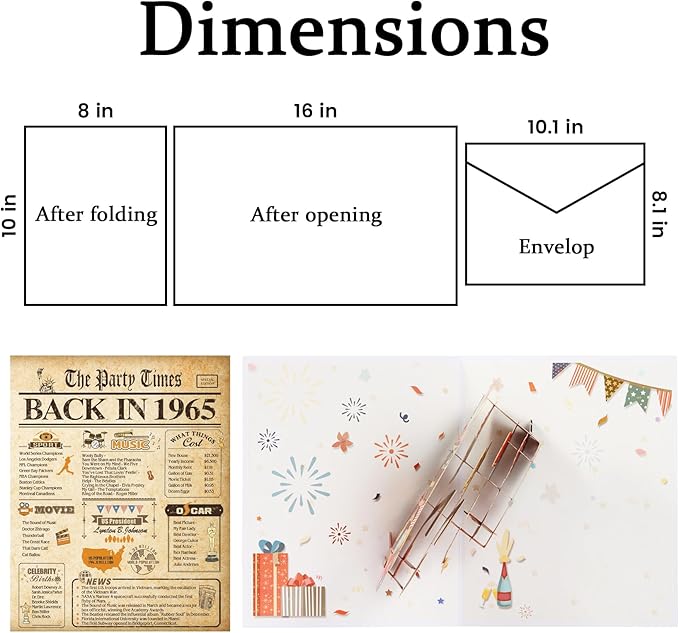 60th Birthday Card for Men Women, 3D Pop Up 60th Birthday Gifts Cards for Him Her, Back In 1965 Funny 60 Year Old Birthday Decorations, Classy Vintage
