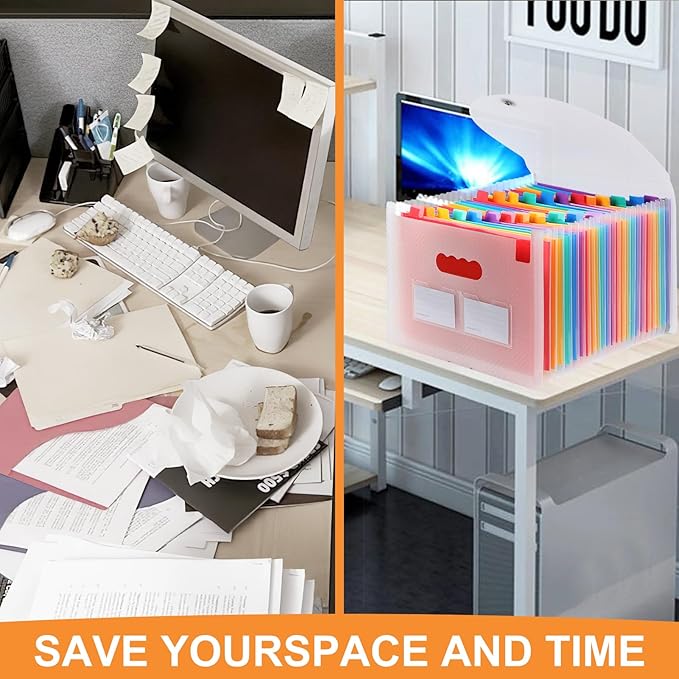 • Perfect Document Organization: 24 pockets, can store more than 4000 paper documents, suitable for A4/ letter size paper, suitable for storing documents in daily life. It stands on the table by itself and is not easy to tip over. Extended File Organization is a perfect file organization for home, office, school and travel