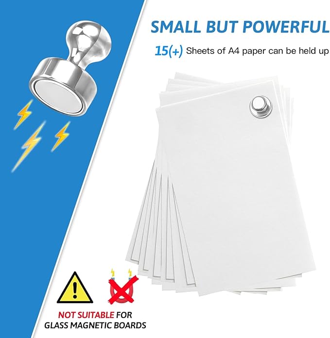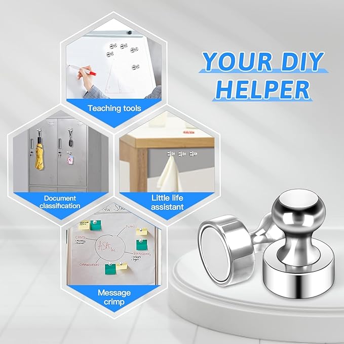 - 【Best Organiser】With these magnetic push pins, everything will become tidy and orderly. Perfect for holding paper, posters, cards, photos, school paperwork, kids' artwork, note list, or potty training charts sliding on whiteboards, fridges, bulletin boards, magnetic maps, calendars, lockers, file cabinets, and other magnetic surfaces.