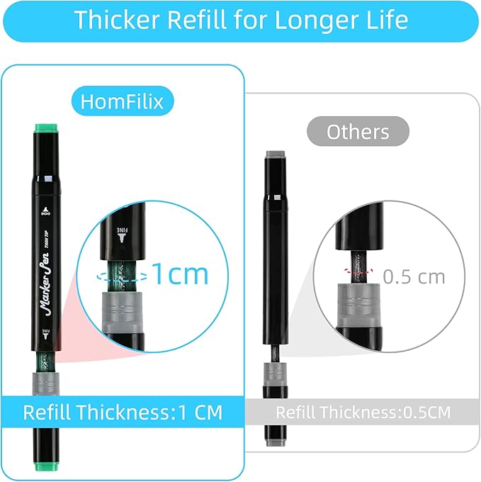 • [ Wide Core ]: Each alcohol marker has a wide core of about 1 cm, providing extended durability compared to other markers. This feature enhances the lifespan of each pen