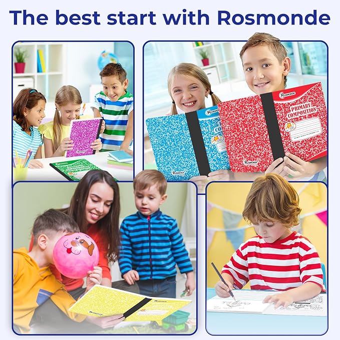 - PRIMARY COMPOSITION: Our 50 Pack primary composition notebooks come with 100 sheets (200 pages) of paper with sheet size of 9-3/4" x 7-1/2". The paper is thicker and of higher quality to handle pencils, crayons, and early handwriting efforts without ink bleed-through.