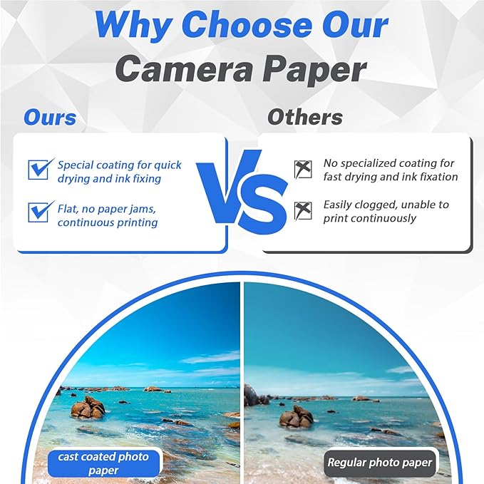 • 【Reliable Quality】 Say goodbye to smudges and smears with our quick-drying, waterproof photo printer paper. 200gsm Weight offers durability and reliability, raw material make it able to be stored for a long time