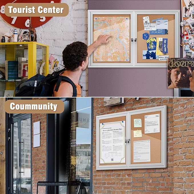 - 🌟✔【Secure Enclosed Bulletin Board】: This lockable bulletin board ensures the safety of your announcements and guarantees that posted items can only be removed by authorized individuals. Suitable for push pins, thumb tacks, or map pins, it's perfect for displaying notes, messages, pictures, memos, calendars, menus, reminders, and more. Ideal for home, office, or business environments.