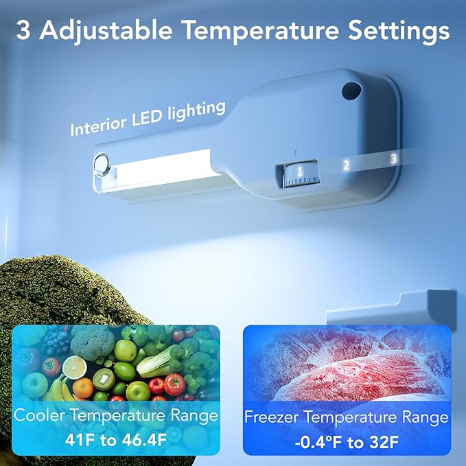 • The small refrigerator with thermostatic knob can be adjusted to 32°F to 50°F in the refrigerator compartment / 3°F to -1°F in the freezer compartment. Turn the thermostatic knob, meet the different temperature requirements of different foods.