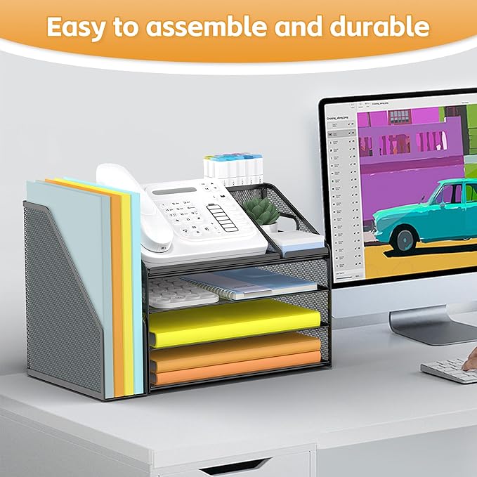 - Durable Steel Mesh Construction: Made from high-quality steel mesh material, this file organizer for desk is designed for long-lasting use. The steel mesh not only offers a sleek, modern appearance but also provides strength and durability for your office needs. It's a stylish addition to your office that combines functionality and aesthetics