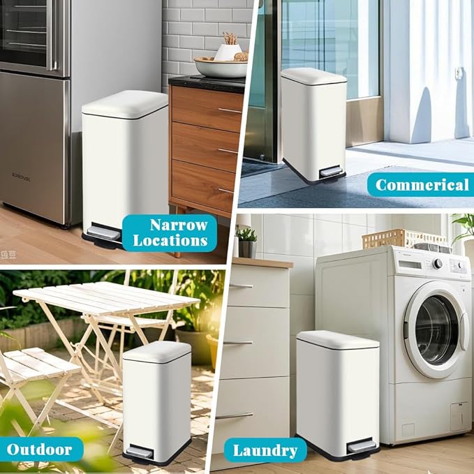 - Pet-Proof & Soft Close Lid:Tall trash can with lid ensuring a smooth and quiet closing every time. This step trash can is perfect for families with small children or pets.Dog proof trash can also prevents pets from tipping over and stays open for convenient use.