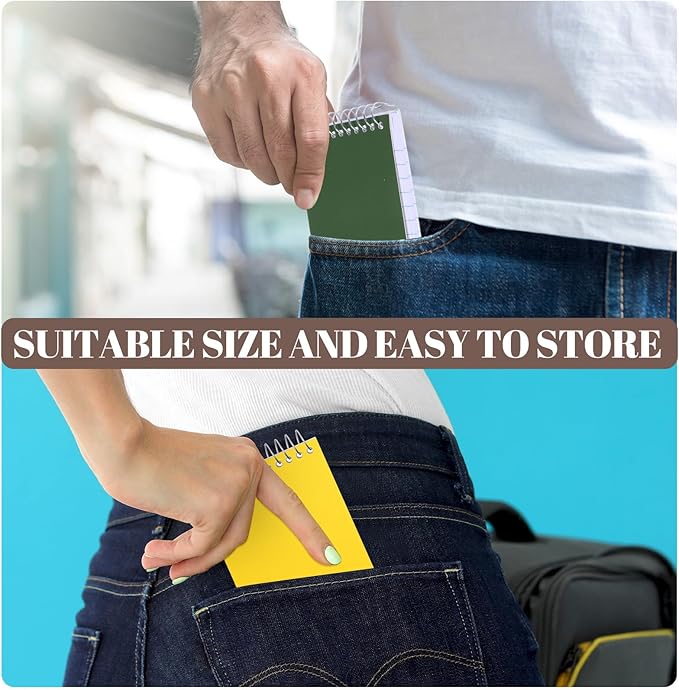 • Top Spiral Bound: each pocket memo pad adopts top spiral binding, so the page can lay flat for a more comfortable writing condition for right or left handed users; And the unobstructed spiral binding design won't hang up on clothes or backpacks, very thoughtful