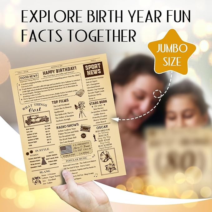 - β¨Best 80th Birthday Card - If you are looking for a gift for friends and families who are going to celebrate a 80th birthday, This jumbo 80th card is filled with interesting facts from 1945. It has an antiqued paper background