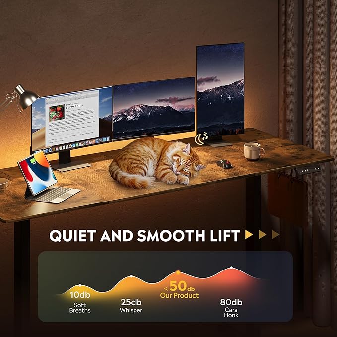 - 【Quite & Smooth Height Adjustments】Tri-motor system delivers whisper-quiet (<50dB) height transitions (28.35"-46.45") in seconds, eliminating manual adjustments and prevent desktop tilting. Standing desk adjustable height perfected for ergonomic shifts, ensuring buttery-smooth operation whether sitting or standing.