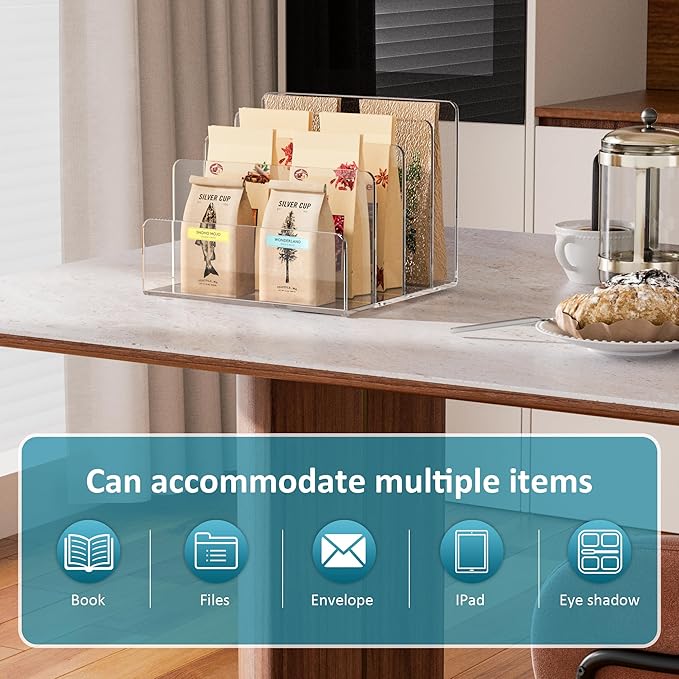 • Wide Application: The acrylic holder can be used for so many items display. It can be used for files, envelope, documents, magazines, phone, letters in your office. Or you can use it for cosmetics,Ipad, vinyls, eye shadows, makeups in your home. Multifunctions for your goods organizer.