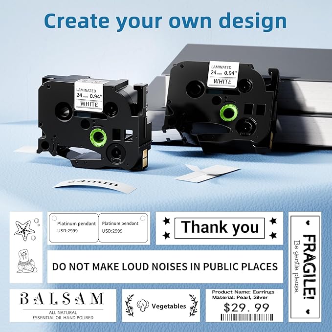 - 【TZe251 Quality】Durable tz tape 24mm 0.94 laminated white Compatible with resists fading, water, heat, cold and chemicals. Our label tape maintains clear black text for extended use, similar to compatible brother p-touch label tape standards