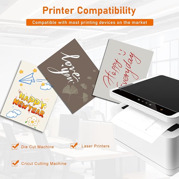 • Printer Compatibility:our thick printer paper card stock is compatible with most types of laser printers, inkjet, die-cutting machines, and cricut cutting machines. Please ensure that your printer can print on 250gsm before ordering