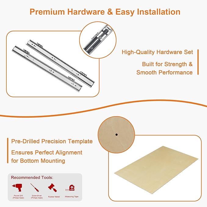 - Soft-Close & Heavy-Duty Slides: These cabinet pull out shelves feature full-extension soft-close slides for smooth, quiet performance. Designed for everyday convenience, the pull out cabinet drawer makes it easy to access hard-to-reach items, helping you stay organized and maximize your storage space