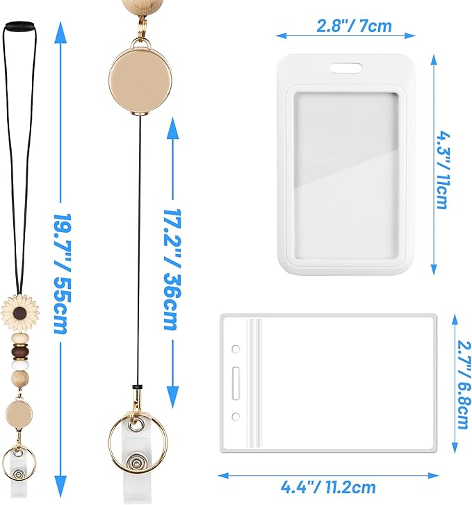 • 9-in-3 Badge Lanyard Set: This set includes three retractable lanyards for ID badges (19.7 in / 55 cm), three PVC ID holders (4.4 x 2.7 in / 11.2 x 6.8 cm), and three colorful ABS badge holders (4.3 x 2.8 in / 11 x 7 cm), offering a convenient solution for carrying your ID badge or keys
