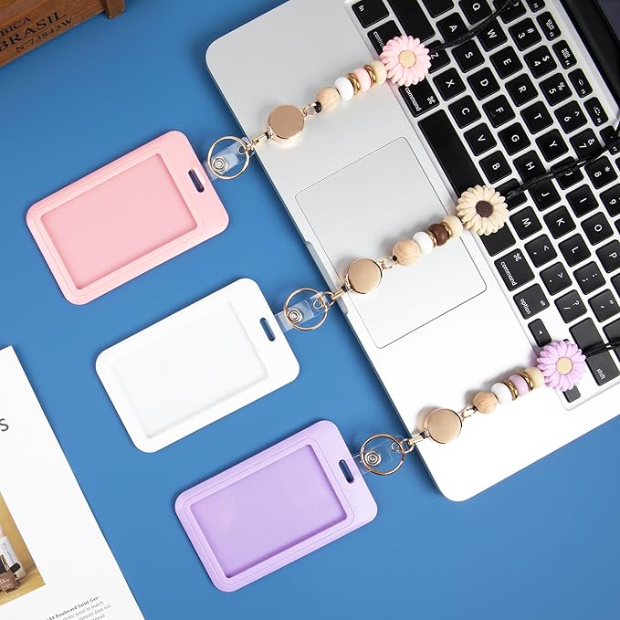 • Durable and Reliable Materials: The beaded ID lanyard is made from high-quality silicone and wooden beads, equipped with a sturdy alloy rotatable buckle. Its contemporary daisy design adds a stylish touch to your everyday attire