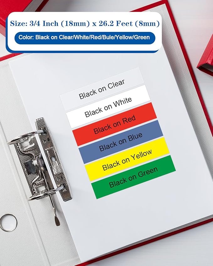 • Package Information: 6-pack p touch label tape TZe 18mm 0.7 laminated colored compatible for brother TZe-241 TZe-141 TZe-441 TZe-541 TZe-641 TZe-741, Size: 18mm (3/4'') x 8m (26.2 feet) per label tape
