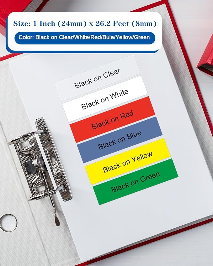 • Package Information: 6-pack p touch label tape TZe 24mm 0.94 laminated colored compatible for brother TZe-251 TZe-151 TZe-451 TZe-551 TZe-651 TZe-751, Size: 24mm (1'') x 8m (26.2 feet) per label tape